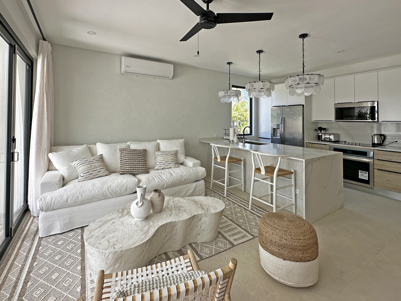 Bright interiors with large windows welcoming natural light and trade winds.