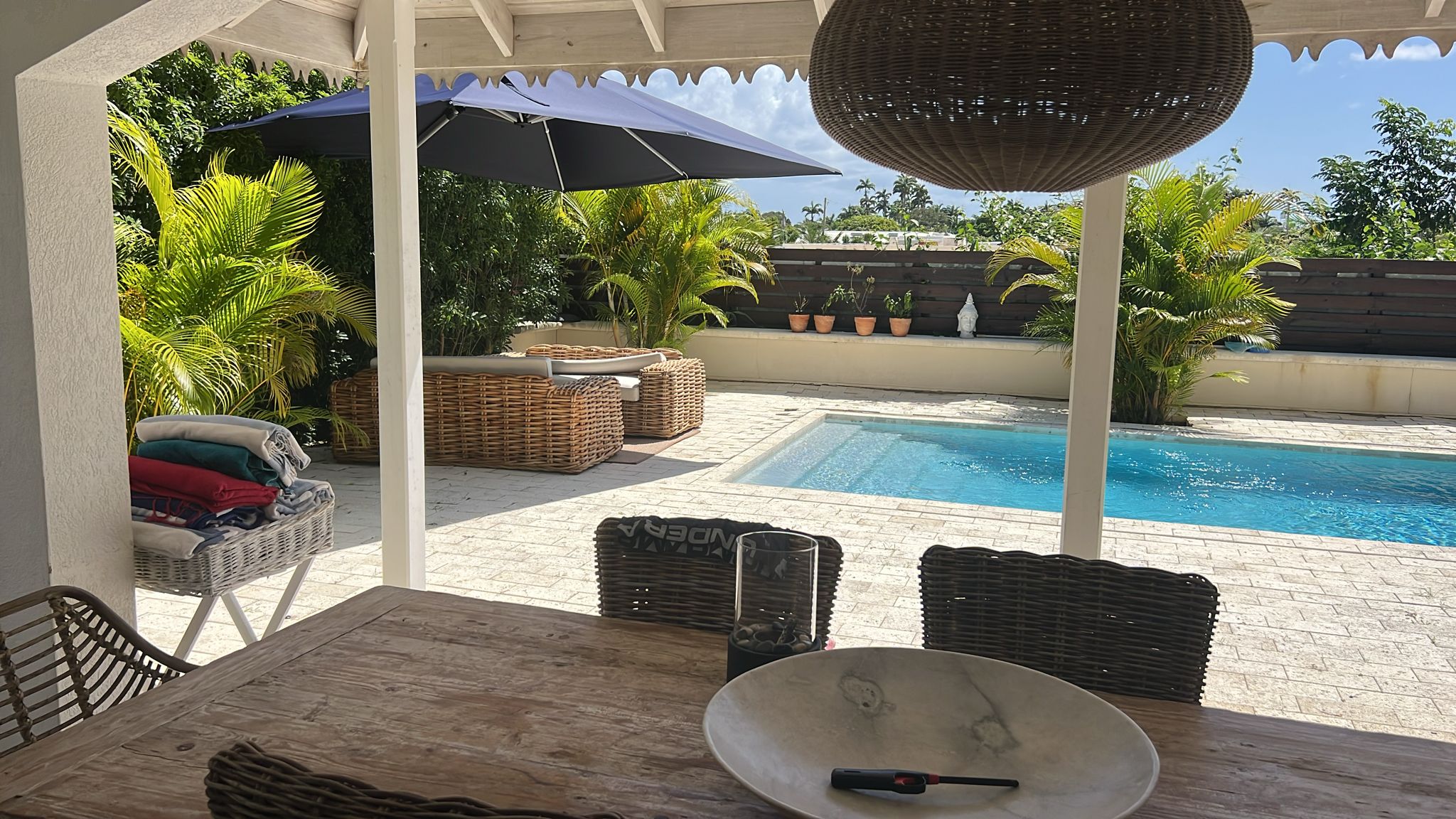 The covered terrace is ideal for alfresco dining and entertaining, while the private in-ground swimming pool is the perfect spot to cool off on warm Caribbean days.
