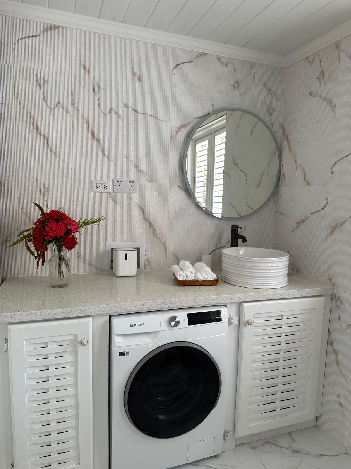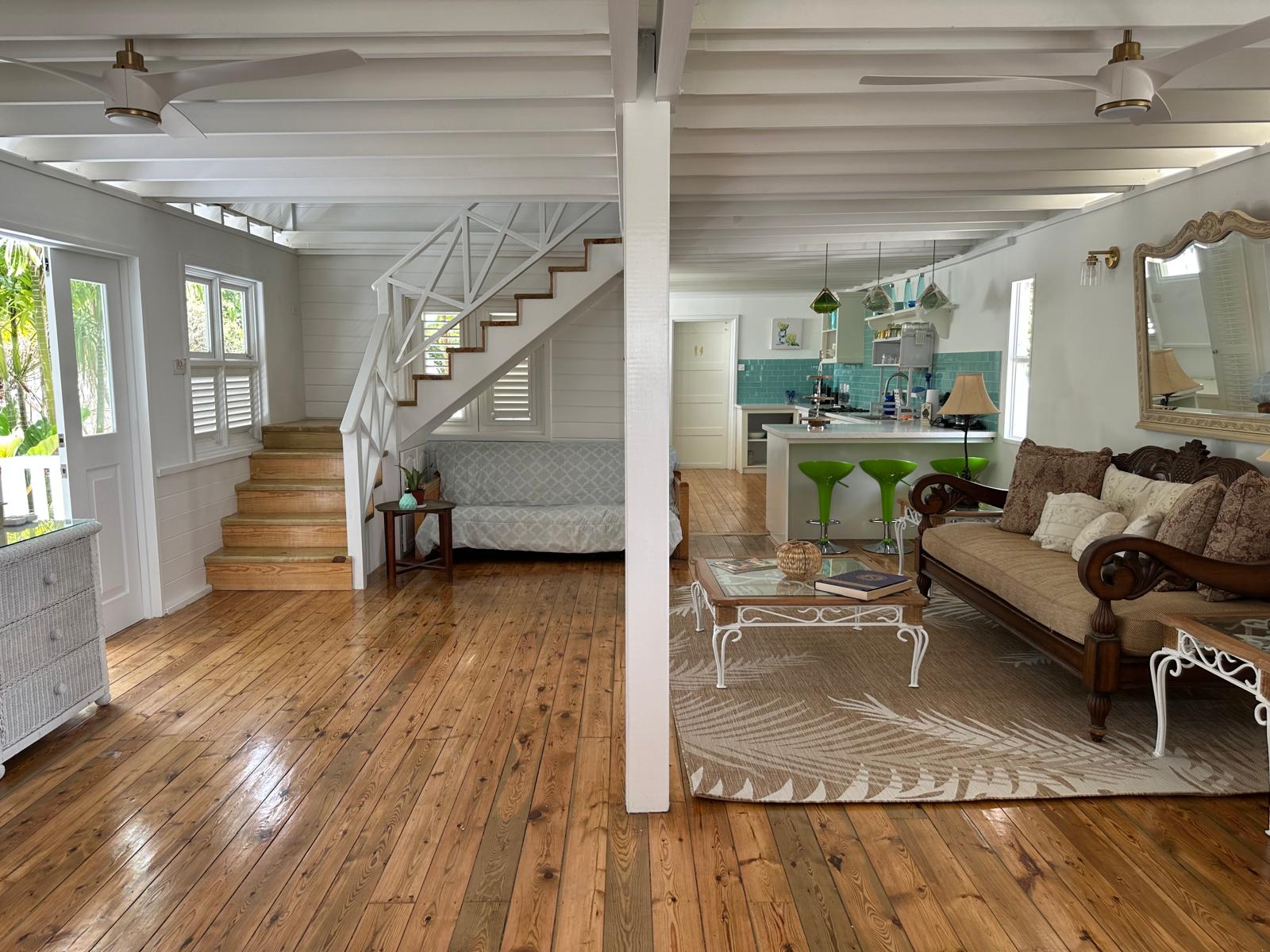 Nestled in a quiet, breezy neighborhood, the home is designed for relaxed Caribbean living. The open-plan layout creates a warm and inviting atmosphere, with a comfortable living area that flows seamlessly into a fully equipped kitchen and dining space. Large windows allow for plenty of natural light, while gentle breezes keep the home cool year-round.